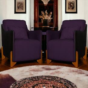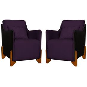 Kit 2 Poltronas Decorativas Pés Madeira Heloisa Veludo Composê em Corino Preto - Estopar - Roxo