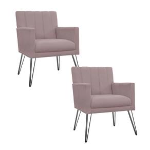 Kit 2 Poltronas Decorativas Sala de Espera Pés de Ferro Cecília Suede Rose - LM DECOR - Rosê