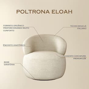Transforme qualquer ambiente com a elegância escultural da Poltrona Orgânica Eloah. Seu design orgânico e curvas envolventes proporcionam não apenas um visual moderno e sofisticado, mas também um conforto inigualável. Ideal para quem valoriza estilo e aconchego em um só móvel. Seja na sala de estar, no quarto ou em espaços de leitura, Eloah imprime personalidade e bom gosto, elevando a décor com requinte único.