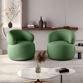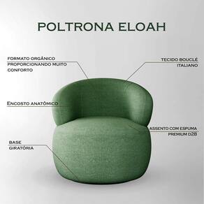 Kit 2 Poltronas Design Orgânico Moderno e Sofisticado Eloah Base Giratória Bouclé Italiano Verde Sel