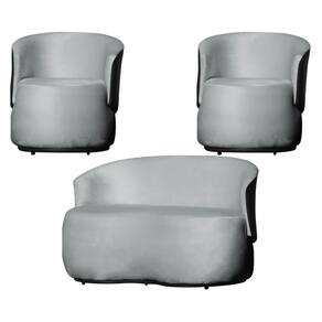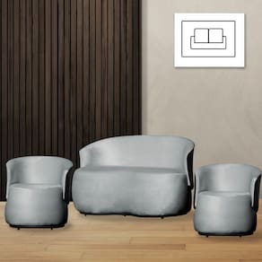 Kit 2 Poltronas e 1 Namoradeira Orgânica Beatriz Veludo Composê Corino Preto - Estopar - Prata