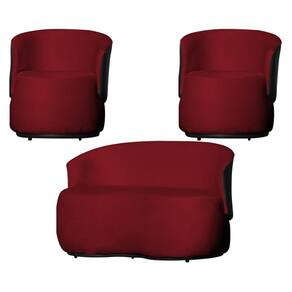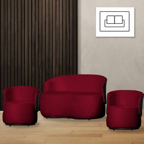Kit 2 Poltronas e 1 Namoradeira Orgânica Beatriz Veludo Composê Corino Preto - Estopar - Vermelho