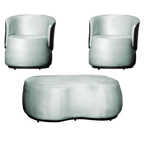 Kit 2 Poltronas e 1 Puff Grande Estilo Orgânico Beatriz Veludo Composê Corino Preto - Estopar - Verde Claro
