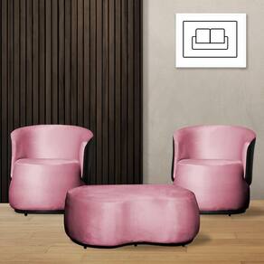 Kit 2 Poltronas e 1 Puff Grande Estilo Orgânico Beatriz Veludo Composê Corino Preto - Estopar - Rosa