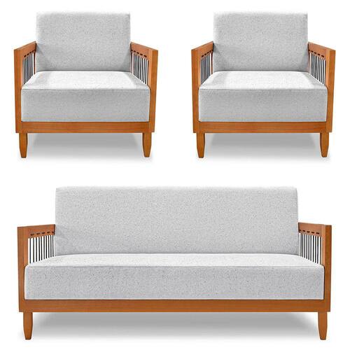 Kit 2 Poltronas e Sofá Living 2 Lugares Marilia 1,60m Linho Base em Madeira Castanho - Pallazio - Cinza