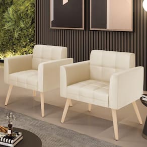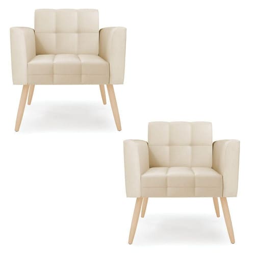 Você gosta de colecionar vários momentos memoráveis com sua família e amigos? Que tal recebê-los, com móveis de altíssima qualidade que só a DRossi tem? O Kit 2 Poltronas Elisa é adequado para você! Seu design retrô é a grande tendência do momento. Pode ser em diversos espaços da casa, em salas, hall de entrada, quartos, cozinhas, varanda, sacada, escritório, dentre outros. Contém as seguintes características: A estrutura é feita de madeira de Eucalipto 100% de reflorestamento, e os Pés Palito Natural, além de serem resistentes e duráveis, suportam em média até 120 kg. Assento, encosto e braços, contém enchimento de espuma D-23 e é estofada em tecido Corino, que oferece muito conforto e resistência ao sentar, com aquela sensação de maciez e aconchego. Possui também, detalhes de costura no encosto e assento, resultando em um acabamento impecável, conferindo muito mais valor e elegância ao seu espaço. Para complementar a decoração com essas lindas poltronas, a dica é utilizar mantas, almofadas ou vasinho de flor. E pronto, seu cantinho estará perfeito para descansar e relaxar! Aqui, você encontra várias opções, para que seus amigos e familiares se sintam acolhidos. Garanta já seu Kit 2 Poltronas.