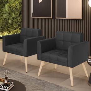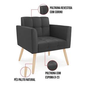 Você gosta de colecionar vários momentos memoráveis com sua família e amigos? Que tal recebê-los, com móveis de altíssima qualidade que só a DRossi tem? O Kit 2 Poltronas Elisa é adequado para você! Seu design retrô é a grande tendência do momento. Pode ser utilizado em diversos espaços da casa, em salas, hall de entrada, quartos, cozinhas, varanda, sacada, escritório, dentre outros. Contém as seguintes características: A estrutura é feita de madeira de Eucalipto 100% de reflorestamento, e os Pés Palito l, além de serem resistentes e duráveis, suportam em média até 120 kg. Assento, encosto e braços, contém enchimento de espuma D-23 e é estofada em tecido Corino, que oferece muito conforto e resistência ao sentar, com aquela sensação de maciez e aconchego. Possui também, detalhes de costura no encosto e assento, resultando em um acabamento impecável, conferindo muito mais valor e elegância ao seu espaço. Para complementar a decoração com essas lindas poltronas, a dica é utilizar mantas, almofadas ou vasinho de flor. E pronto, seu cantinho estará perfeito para descansar e relaxar! Aqui, você encontra várias opções, para que seus amigos e familiares se sintam acolhidos. Garanta já seu Kit 2 Poltronas.
