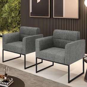 Estrutura: Madeira Eucalipto Espuma: D-23 Tecido: Linho Tipo de pés: Base Metálica Industrial Peso suportado: Até 120 Kg Garantia: 90 dias contra defeito de fabricação Montagem: O produto vai montado, apenas rosquear os pés Instruções de limpeza: Utilizar um pano limpo e levemente úmido Você irá receber: 02 Poltronas - Entregue em: 02 Volumes