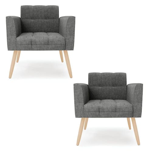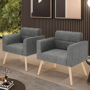 Você gosta de colecionar vários momentos memoráveis com sua família e amigos? Que tal recebê-los, com móveis de altíssima qualidade que só a DRossi tem? O Kit 2 Poltronas Elisa é adequado para você! Seu design retrô é a grande tendência do momento. Pode ser em diversos espaços da casa, em salas, hall de entrada, quartos, cozinhas, varanda, sacada, escritório, dentre outros. Contém as seguintes características: A estrutura é feita de madeira de Eucalipto 100% de reflorestamento, e os Pés Palito Natural, além de serem resistentes e duráveis, suportam em média até 120 kg. Assento, encosto e braços, contém enchimento de espuma D-23 e é estofada em tecido Linho, no tom Grafite, que oferece muito conforto e resistência ao sentar, com aquela sensação de maciez e aconchego. Possui também, detalhes de costura no encosto e assento, resultando em um acabamento impecável, conferindo muito mais valor e elegância ao seu espaço. Para complementar a decoração com essas lindas poltronas, a dica é utilizar mantas, almofadas ou vasinho de flor. E pronto, seu cantinho estará perfeito para descansar e relaxar! Aqui, você encontra várias opções, para que seus amigos e familiares se sintam acolhidos. Garanta já seu Kit 2 Poltronas.
