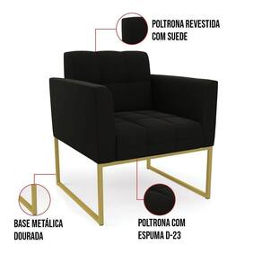 Kit 2 Poltronas Elisa Suede Base Metálica Industrial Dourado - D'rossi Cor Preto