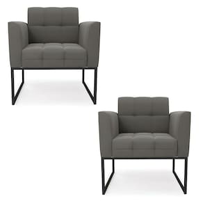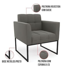 Kit 2 Poltronas Elisa Suede Base Metálica Industrial Preto - D'rossi Cor Grafite
