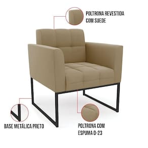 Você gosta de colecionar vários momentos memoráveis com sua família e amigos? Que tal recebê-los, com móveis de altíssima qualidade que só a DRossi tem? O Kit 2 Poltronas Elisa é adequado para você! Seu design retrô é a grande tendência do momento. Pode ser utilizado em diversos espaços da casa, em salas, hall de entrada, quartos, cozinhas, varanda, sacada, escritório, dentre outros. Contém as seguintes características: A estrutura é feita de madeira de Eucalipto 100% de reflorestamento, e a Base Industrial Metálica Preto, além de ser resistente e durável, suporta em média até 120 kg. Assento, encosto e braços, contém enchimento de espuma D-23 e é estofada em tecido Suede, no tom Marrom Rato, que oferece muito conforto e resistência ao sentar, com aquela sensação de maciez e aconchego. Possui também, detalhes de costura no encosto e assento, resultando em um acabamento impecável, conferindo muito mais valor e elegância ao seu espaço. Para complementar a decoração com essas lindas poltronas, a dica é utilizar mantas, almofadas ou vasinho de flor. E pronto, seu cantinho estará perfeito para descansar e relaxar! Aqui, você encontra várias opções, para que seus amigos e familiares se sintam acolhidos. Garanta já seu Kit 2 Poltronas.
