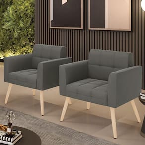 Kit 2 Poltronas Elisa Suede Pés Palito Natural - D`rossi Cor Grafite - Blush