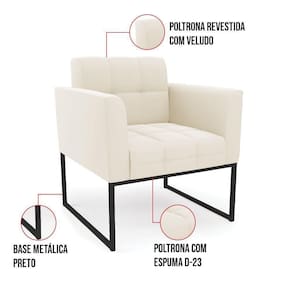 Você gosta de colecionar vários momentos memoráveis com sua família e amigos? Que tal recebê-los, com móveis de altíssima qualidade que só a DRossi tem? O Kit 2 Poltronas Elisa é adequado para você! Seu design retrô é a grande tendência do momento. Pode ser utilizado em diversos espaços da casa, em salas, hall de entrada, quartos, cozinhas, varanda, sacada, escritório, dentre outros. Contém as seguintes características: A estrutura é feita de madeira de Eucalipto 100% de reflorestamento, e a Base Metálica Industrial Preto, além de ser resistente e durável, suporta em média até 120 kg. Assento, encosto e braços, contém enchimento de espuma D-23 e é estofada em tecido Veludo, que oferece muito conforto e resistência ao sentar, com aquela sensação de maciez e aconchego. Possui também, detalhes de costura no encosto e assento, resultando em um acabamento impecável, conferindo muito mais valor e elegância ao seu espaço. Para complementar a decoração com essas lindas poltronas, a dica é utilizar mantas, almofadas ou vasinho de flor. E pronto, seu cantinho estará perfeito para descansar e relaxar! Aqui, você encontra várias opções, para que seus amigos e familiares se sintam acolhidos. Garanta já seu Kit 2 Poltronas.