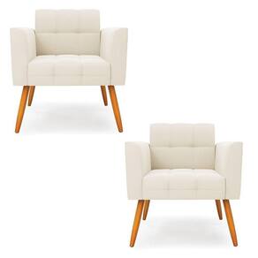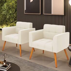 Kit 2 Poltronas Elisa Veludo Bege Pés Palito Castanho - D'rossi