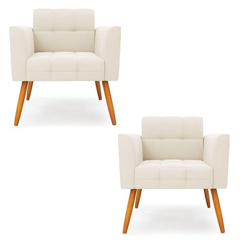 Você gosta de colecionar vários momentos memoráveis com sua família e amigos? Que tal recebê-los, com móveis de altíssima qualidade que só a DRossi tem? O Kit 2 Poltronas Elisa é adequado para você! Seu design retrô é a grande tendência do momento. Pode ser utilizado em diversos espaços da casa, em salas, hall de entrada, quartos, cozinhas, varanda, sacada, escritório, dentre outros. Contém as seguintes características: A estrutura é feita de madeira de Eucalipto 100% de reflorestamento, e os Pés Palito Castanho, além de serem resistentes e duráveis, suportam em média até 120 kg. Assento, encosto e braços, contém enchimento de espuma D-23 e é estofada em tecido Veludo, no tom Bege, que oferece muito conforto e resistência ao sentar, com aquela sensação de maciez e aconchego. Possui também, detalhes de costura no encosto e assento, resultando em um acabamento impecável, conferindo muito mais valor e elegância ao seu espaço. Para complementar a decoração com essas lindas poltronas, a dica é utilizar mantas, almofadas ou vasinho de flor. E pronto, seu cantinho estará perfeito para descansar e relaxar! Aqui, você encontra várias opções, para que seus amigos e familiares se sintam acolhidos. Garanta já seu Kit 2 Poltronas.