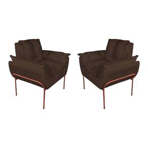 Kit 2 Poltronas Escritório Base Cobre Suede Marrom - Vallisa Decor