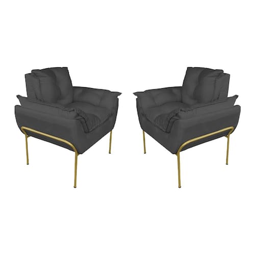 Kit 2 Poltronas Escritório Base Dourada Suede Cinza - Vallisa Decor