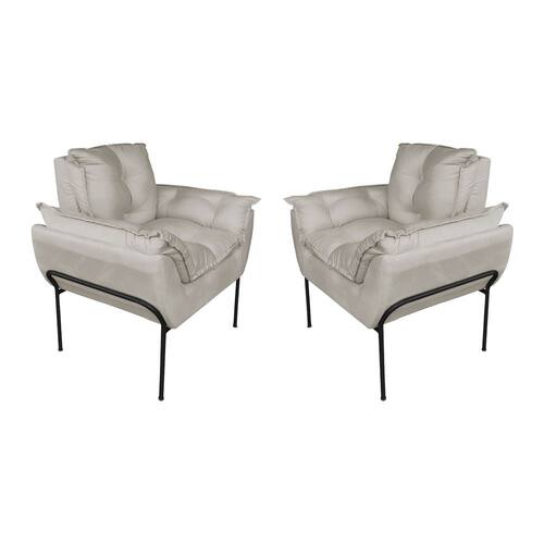 Kit 2 Poltronas Escritório Base Preta Suede Bege - Vallisa Decor