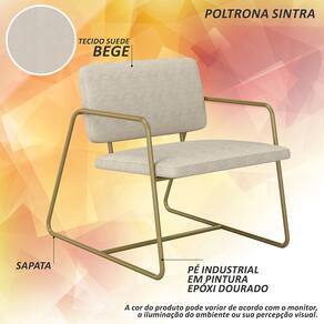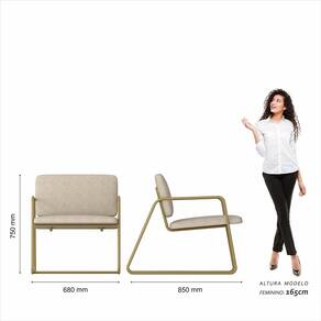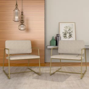 Detalhes Técnicos das Poltronas - Assento e Encosto Tapeçados, Estofados e Fixos - Espuma do Assento e do Encosto: D20 - Tonalidade: Dourado/Suede Bege - Material: Metalon - Medida Poltrona: A: 75CM x L: 68CM x P: 85CM - Medida do chão até o assento: 45cm de altura - Poltrona suporta até 120KG - Montagem: Difícil
