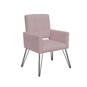 Kit 2 Poltronas Estofadas Para Sala Comercial Pés de Ferro Camila Suede Rose - LM DECOR - Rosê