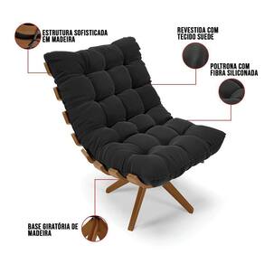 Poltrona Costela, o nome se explica por si só não!? Seu design marcante remete às costelas do corpo humano, além de ser muito confortável. Uma peça perfeita para decorar sua sala de estar. Seu assento, encosto e base giratória são em madeira, as almofadas são super macias, com detalhes capitonê, com fibra siliconada, revestido no tecido Suede no tom Preto. Fala aí se não é perfeita para valorizar o seu espaço! Que tal deixar seu cantinho de descanso mais aconchegante e com muita elegância? Ter uma poltrona já é ótimo, imagina ter o kit! Garanta o seu!