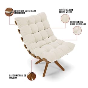 Poltrona Costela, o nome se explica por si só não!? Seu design marcante remete às costelas do corpo humano, além de ser muito confortável. Uma peça perfeita para decorar sua sala de estar. Seu assento, encosto e base giratória são em madeira, as almofadas são super macias, com detalhes capitonê, com fibra siliconada, revestido no tecido Veludo no tom Bege. Fala aí se não é perfeita para valorizar o seu espaço! Que tal deixar seu cantinho de descanso mais aconchegante e com muita elegância? Ter uma poltrona já é ótimo, imagina ter o kit! Garanta o seu!