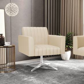 Quer uma decoração única e sofisticada? A Poltrona Viena é ideal para quem está em busca de um móvel versátil e diferenciado. Esse tipo de peça é ideal para ambientes modernos e descontraídos. Vem com uma ideia totalmente diferente, devido sua curva e forma suave, os detalhes gomados do tecido são tendências de decoração atuais. O tom Bege vem ganhando cada vez mais espaço no mercado, uma cor que traz elegância e combina com vários tipos de decoração. Uma dica legal de complemento é escolher almofadas que combinem com a poltrona. Sua estrutura é confeccionada em madeira de eucalipto proveniente de reflorestamento, o estofamento do assento é composto de espuma prorelax D-23 no encosto, e é revestido em Corino um tecido aconchegante, resistente e extremamente luxuoso. Sua sustentação é dada pela Base Base Giratória Cromada, suportando em média até 120 Kg. Crie um lindo efeito visual, em qualquer lugar da sua casa ou escritório! Garanta já seu Kit 2 Poltronas Viena.