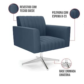 Kit 2 Poltronas Giratória Viena Gomada Suede Base Cromada - D'rossi Cor Azul Marinho Quer uma decoração única e sofisticada? A Poltrona Viena é ideal para quem está em busca de um móvel versátil e diferenciado. Esse tipo de peça é ideal para ambientes modernos e descontraídos. Vem com uma ideia totalmente diferente, devido sua curva e forma suave, os detalhes gomados do tecido são tendências de decoração atuais. Uma dica legal de complemento é escolher almofadas que combinem com a poltrona. Sua estrutura é confeccionada em madeira de eucalipto proveniente de reflorestamento, o estofamento do assento é composto de espuma prorelax D-28 no encosto, e é revestido em Suede um tecido aconchegante, resistente e extremamente luxuoso. Sua sustentação é dada pela Base Giratória Cromada, suportando em média até 120 Kg. Crie um lindo efeito visual, em qualquer lugar da sua casa ou escritório! Garanta já seu Kit 2 Poltronas Viena. Dimensões da Poltrona: