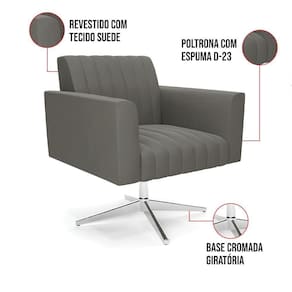 Kit 2 Poltronas Giratória Viena Gomada Suede Grafite Base Cromada - D'rossi