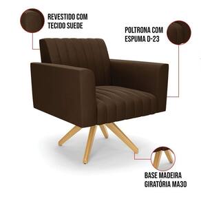 Quer uma decoração única e sofisticada? A Poltrona Viena é ideal para quem está em busca de um móvel versátil e diferenciado. Esse tipo de peça é ideal para ambientes modernos e descontraídos. Vem com uma ideia totalmente diferente, devido sua curva e forma suave, os detalhes gomados do tecido são tendências de decoração atuais. O tom Marrom vem ganhando cada vez mais espaço no mercado, uma cor que traz elegância e combina com vários tipos de decoração. Uma dica legal de complemento é escolher almofadas que combinem com a poltrona. Sua estrutura é confeccionada em madeira de eucalipto proveniente de reflorestamento, o estofamento do assento é composto de espuma prorelax D-28 no encosto, e é revestido em Suede um tecido aconchegante, resistente e extremamente luxuoso. Sua sustentação é dada pela Base Giratória Madeira MA30, suportando em média até 115 Kg. Crie um lindo efeito visual, em qualquer lugar da sua casa ou escritório! Garanta já seu Kit 2 Poltronas Viena.