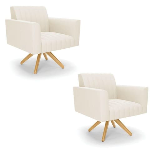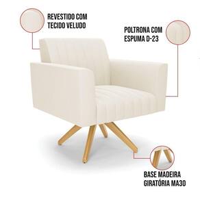 Kit 2 Poltronas Giratória Viena Gomada Veludo Bege Base De Madeira Ma30 - D'rossi Quer uma decoração única e sofisticada? A Poltrona Viena é ideal para quem está em busca de um móvel versátil e diferenciado. Esse tipo de peça é ideal para ambientes modernos e descontraídos. Vem com uma ideia totalmente diferente, devido sua curva e forma suave, os detalhes gomados do tecido são tendências de decoração atuais. O tom Bege vem ganhando cada vez mais espaço no mercado, uma cor que traz elegância e combina com vários tipos de decoração. Uma dica legal de complemento é escolher almofadas que combinem com a poltrona. Sua estrutura é confeccionada em madeira de eucalipto proveniente de reflorestamento, o estofamento do assento é composto de espuma prorelax D-23 no encosto, e é revestido em Veludo um tecido aconchegante, resistente e extremamente luxuoso. Sua sustentação é dada pela Base Giratória Madeira MA30, suportando em média até 120 Kg. Crie um lindo efeito visual, em qualquer lugar da sua casa ou escritório! Garanta já seu Kit 2 Poltronas Viena. Dimensões da Poltrona: