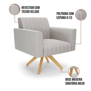 Kit 2 Poltronas Giratória Viena Gomada Veludo Cinza Base De Madeira Ma30 - D'rossi Quer uma decoração única e sofisticada? A Poltrona Viena é ideal para quem está em busca de um móvel versátil e diferenciado. Esse tipo de peça é ideal para ambientes modernos e descontraídos. Vem com uma ideia totalmente diferente, devido sua curva e forma suave, os detalhes gomados do tecido são tendências de decoração atuais. O tom Cinza vem ganhando cada vez mais espaço no mercado, uma cor que traz elegância e combina com vários tipos de decoração. Uma dica legal de complemento é escolher almofadas que combinem com a poltrona. Sua estrutura é confeccionada em madeira de eucalipto proveniente de reflorestamento, o estofamento do assento é composto de espuma prorelax D-23 no encosto, e é revestido em Veludo um tecido aconchegante, resistente e extremamente luxuoso. Sua sustentação é dada pela Base Giratória Madeira MA30, suportando em média até 120 Kg. Crie um lindo efeito visual, em qualquer lugar da sua casa ou escritório! Garanta já seu Kit 2 Poltronas Viena. Dimensões da Poltrona: