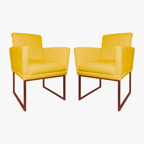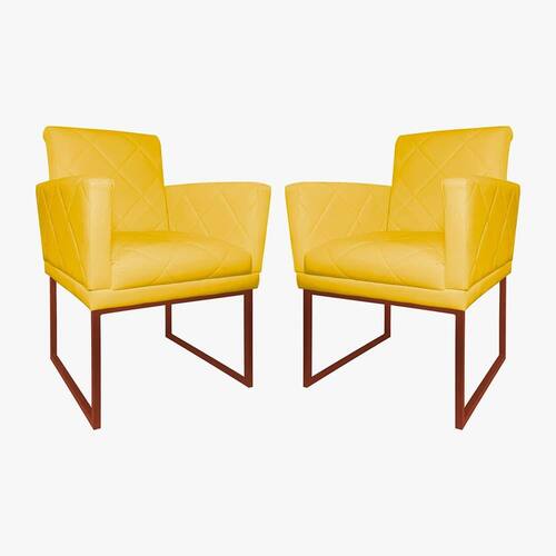 Kit 2 Poltronas Klara Sala Base Metálica Cobre Corano - Vallisa Decor - Amarelo