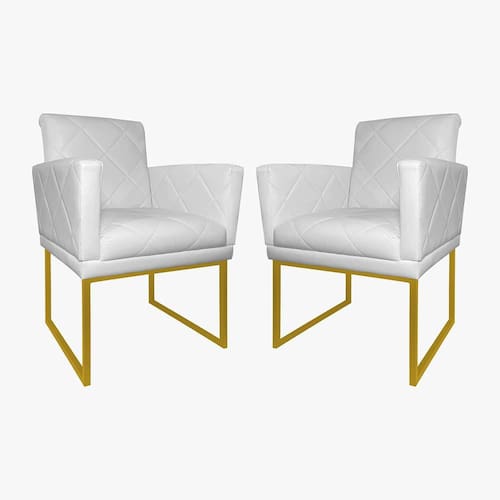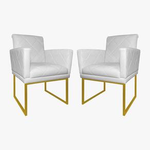 Kit 2 Poltronas Klara Sala Base Metálica Dourada Corano - Vallisa Decor - Branco