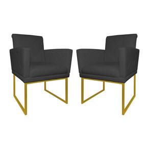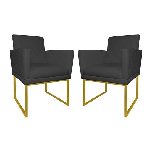 Kit 2 Poltronas Klara Sala Base Metálica Dourada Corano - Vallisa Decor - Cinza
