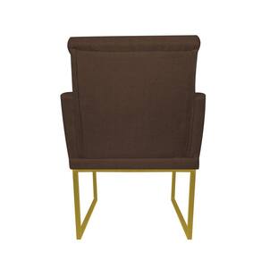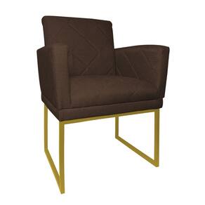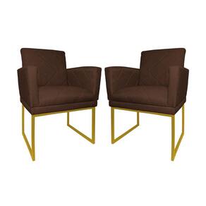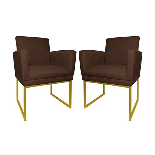 Kit 2 Poltronas Klara Sala Base Metálica Dourada Linho - Vallisa Decor - Marrom