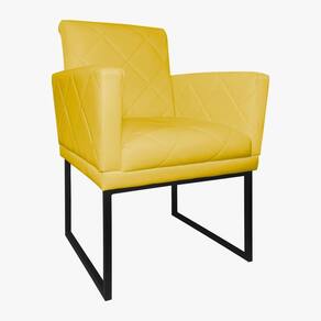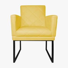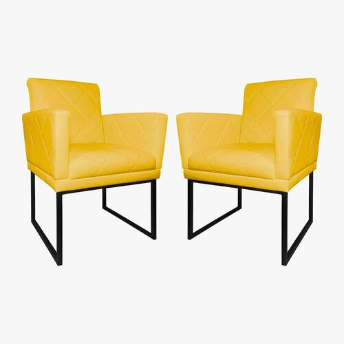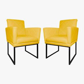 Kit 2 Poltronas Klara Sala Base Metálica Preta Corano - Vallisa Decor - Amarelo