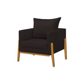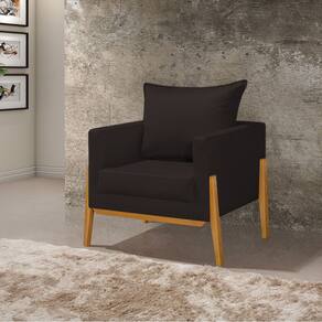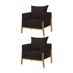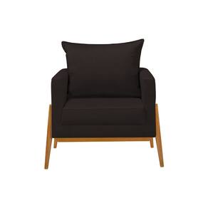 Kit 2 Poltronas Living Base e Pés em Madeira Maciça Madagascar Linho Marrom Escuro