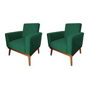 Kit 2 Poltronas Living Base em Madeira Maciça Caribe Veludo Verde