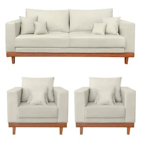 Você receberá 3 volumes, ou seja, um Kit 2 Poltronas Living + Sofá 3 Lugares com Base Madeira Suede