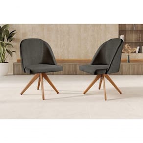 Kit 2 Poltronas Lua Base Giratória De Madeira Cor:linho Preto 102