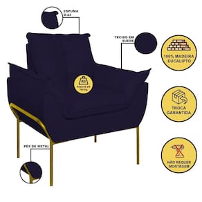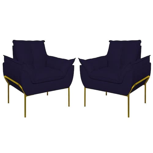 É Reclinável: Não | Desenho Do Tecido: Liso | Acessórios Incluídos: Não | É Sofá-Cama: Não | Estilo: Moderno | Cor Dos Pés: Dourado | Linha: Premium | Material do estofamento: Suede | Unidades Por Kit: 2 | Densidade Da Espuma Do Assento: D-23 | Material De Enchimento Do Encosto: Espuma | Requer Montagem: Não | Altura: 86,5 cm | Marca: Balaqui Decor | Tipo de Garantia: Garantia do Fabricante | Coleção de Antiguidade: Não | Móvel Dobrável: Não | Dimensão (A x L x C): 86,5 x 80 x 61 | Estofado: Suede | de Assentos: 2 | Duração da Garantia: 3 meses | Largura: 80 cm | País de Origem: | Profundidade: 61 cm | Peso do Item (itemWeight): 15 kg | Tipo de produto: Poltrona | Material: Madeira | Fabricante: Balaqui Estofados | Modelo: Poltrona Opala com Pés de Metal | Quantidade de Peças: 2 | Quantidade de caixas de embalagem: 2 | Peso suportado: 180 kg | Material dos pés: Metal | Materiais da estrutura: Madeira | É modular: Não | É Em forma de U: Não | É de canto: Não | É com chaise: Não | Quantidade de Lugares: 2 | Montagem: Montagem Completa Cor: Azul Marinho