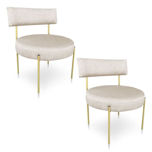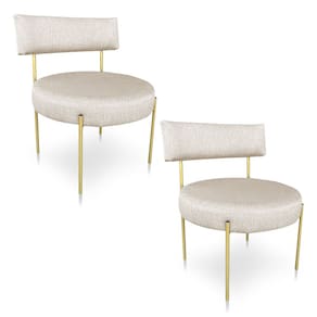 Kit 2 Poltronas Luxo Elora Linho Bege Pés de Ferro Dourado - Pallazio