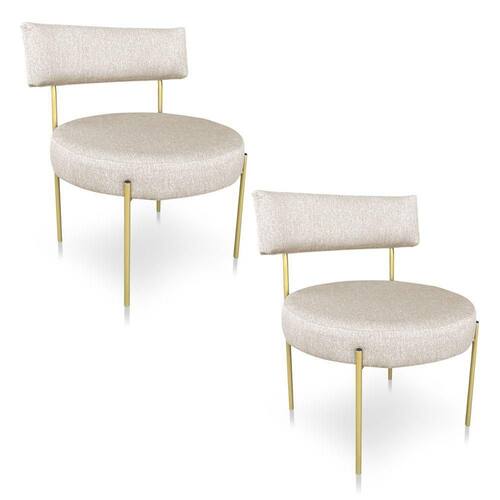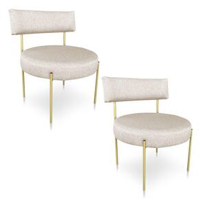Kit 2 Poltronas Luxo Elora Linho Pés De Ferro Dourado - Pallazio Cor Bege