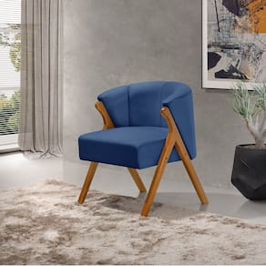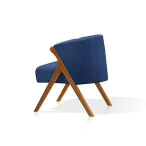Kit 2 Poltronas Luxo Moderna Luna Pés em Madeira Maciça Veludo Azul