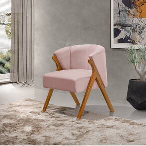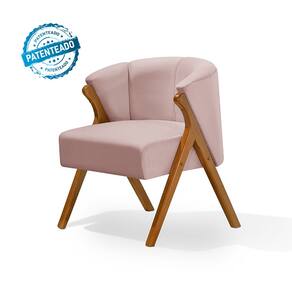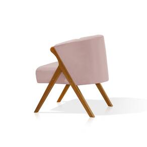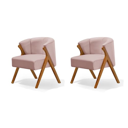 Kit 2 Poltronas Luxo Moderna Luna Pés em Madeira Maciça Veludo Rosê