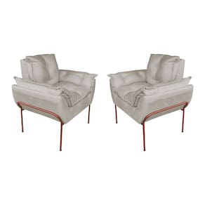 Kit 2 Poltronas Luxo Suede Bege Base de Ferro Cobre - Vallisa Decor