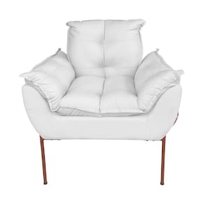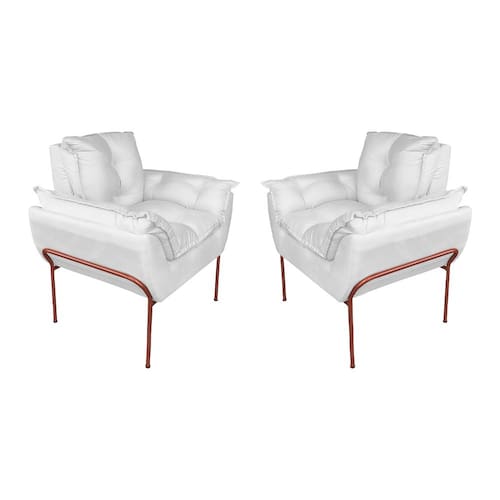 Kit 2 Poltronas Luxo Suede Branco Base de Ferro Cobre - Vallisa Decor