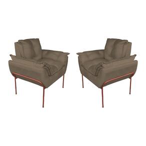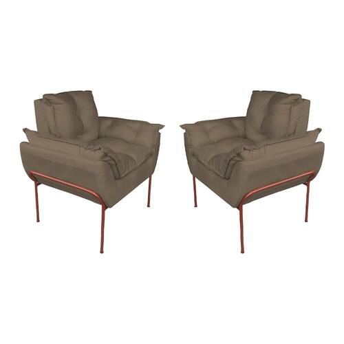 Kit 2 Poltronas Luxo Suede Cappucino Base de Ferro Cobre - Vallisa Decor - Preto